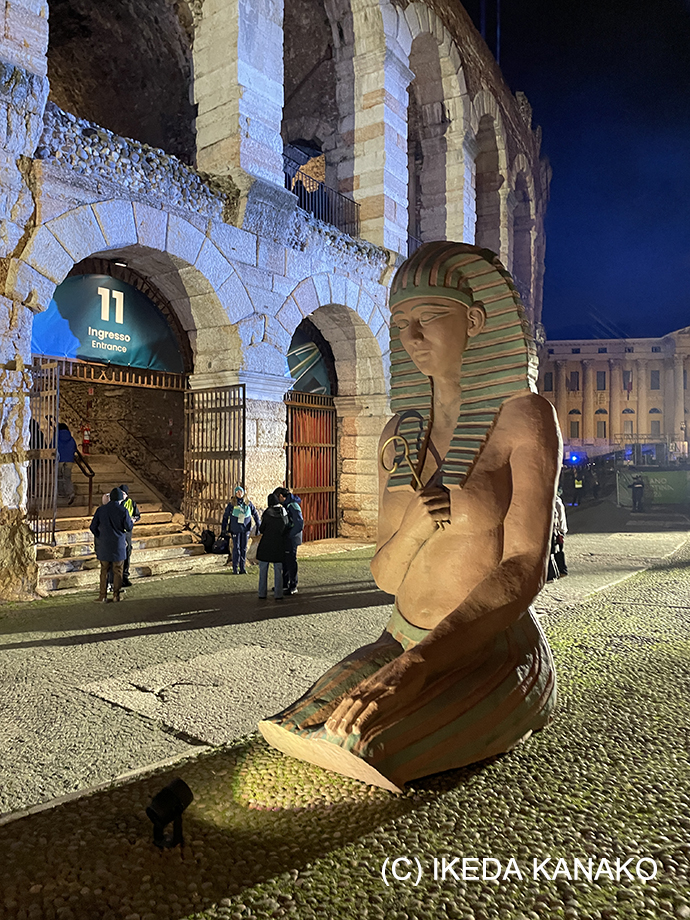 無事にセキュリティーチェックを通過すると、アレーナ円形劇場に入れます。ゲートの入り口にはオペラ・アイーダの舞台装置が。流石、アレーナです。