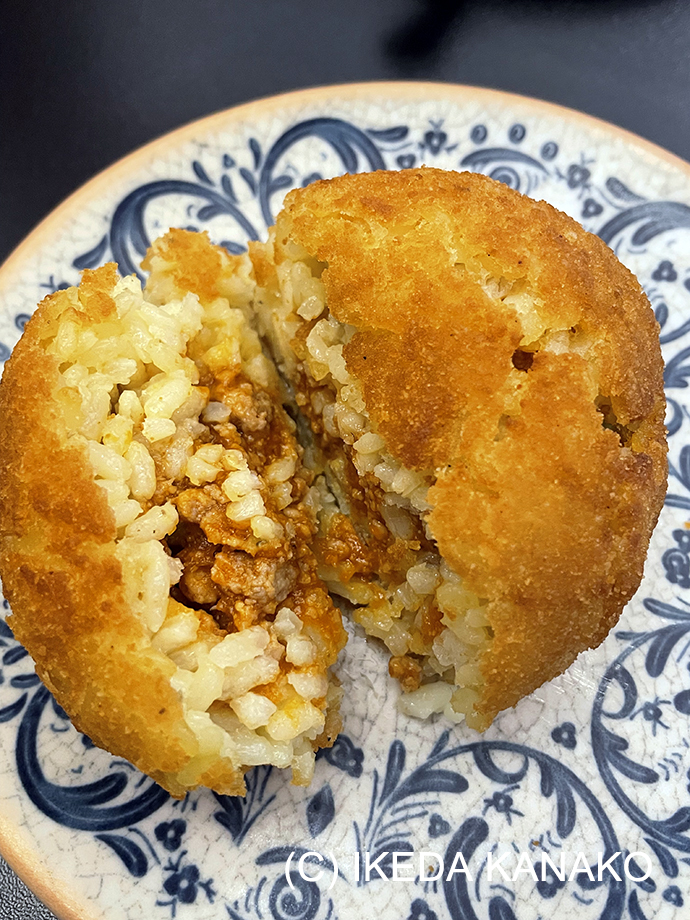 アランチーニ(Arancini)。サフランライスに具を入れて揚げたライスコロッケ。