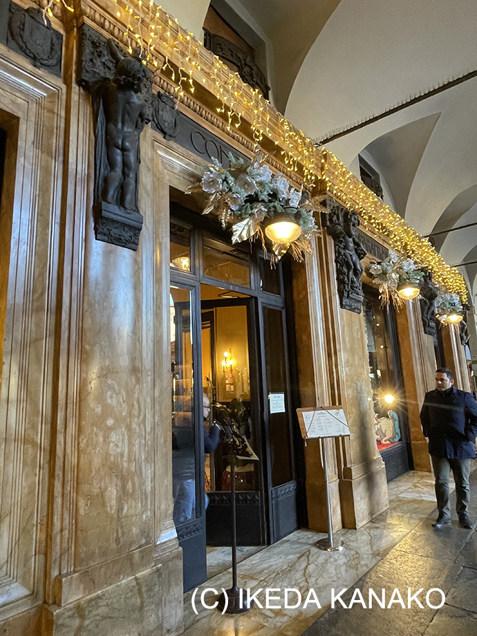 トリノ街歩きは、ぶらぶらっと老舗カフェ「Baratti & Milano(バラッティ&ミラノ)」に入ります。入場したらちゃんとお茶を飲まなくてはいけない雰囲気でしたが、地元の友達が笑顔でチャオと声をかけて内装をチラッと見せてもらい退場。カフェなのにレストラン並みなお値段の高級カフェです。カフェのレジ脇にはチョコレートがたくさん置いてあり、そういえばこっちの人ってチョコとかトリフなど重厚な味わいが好きなだな、とヴェネトと趣向がだいぶ異なりますね。