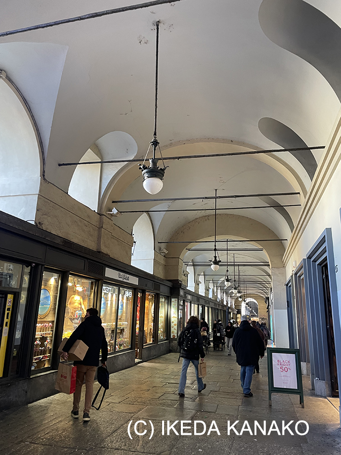 トリノ中心部にある歴史的なアーケード街、スバルピーナ・ガッレリア(Galleria Subalpina)。ガラス屋根に覆われた美しい空間。