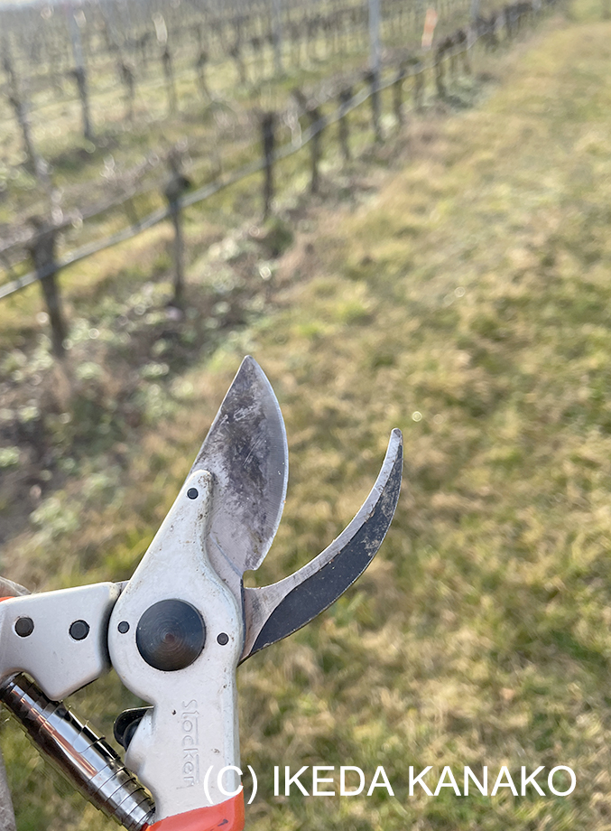 ブドウの木の剪定作業。とにかく早く早くです。
